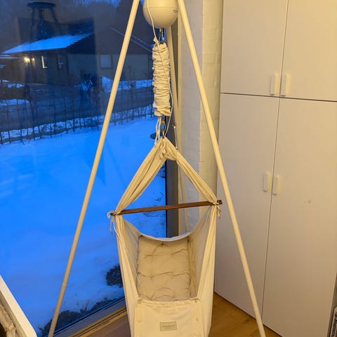 Fin slyngevugge med fladt liggeunderlag. Sælges da baby er blevet for stor til den.