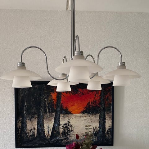 Smuk rød loftslampe/pendel sælges. Lampen er i rigtig god stand og ideel til at hænge over spisebordet.
