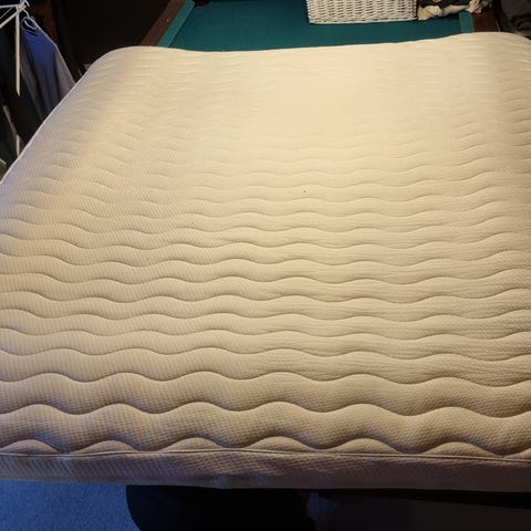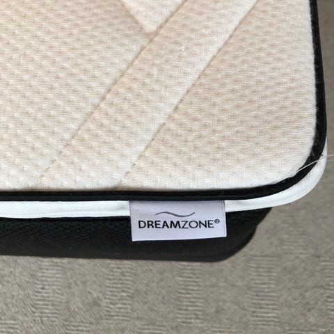 Jysk Dreamzone madras i hvidt betræk. Madrassen har quiltet overflade med bølgemønster og lynlås i kanten, som gør det muligt at tage betrækket af.