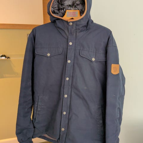 Fjällräven dunjakke – blå/sort – str. S (fitter M)