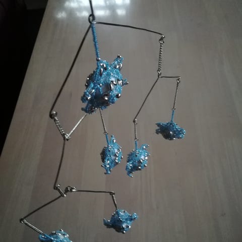 Smuk uro i perler og søpindsvin, med lyserød perler. Unika.