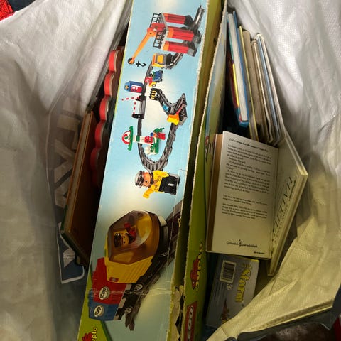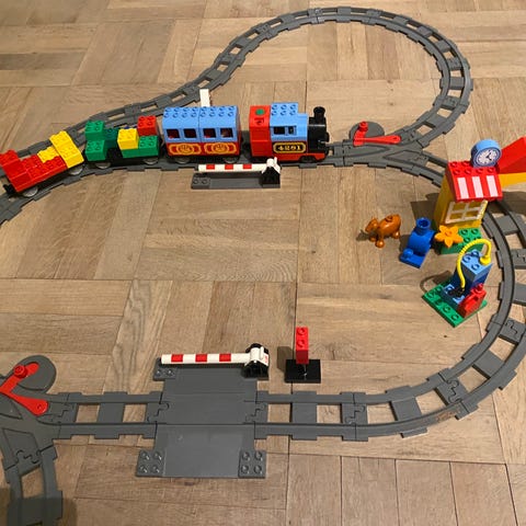 LEGO DUPLO City 3 sæt med skinner, elektriske lokomotiver, vogne, station, kran, 2 benzin stationer og laste station samt tilbehør. Sættet indeholder blandt andet 40 dreje togskinner og 10 lige skinner og bro med grønne bropiller. Yderligere er der to sporskiftere med og en overgang med bom. Der følger ur, lyskryds og vogne til samt lastbil og 4 figure.
