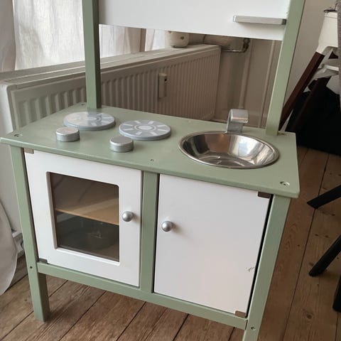 Rigtig fint legekøkken til de mindste, der pga. den lave højde rent faktisk kan nå (se målene på originalbilledet).