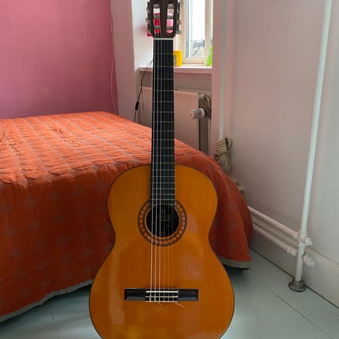 En spansk/Klassisk guitar, Kasuga model G 300. Inklusiv transport taske.
