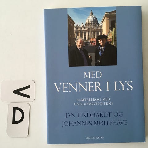 Med venner i lys, an Lindhardt, genre: biografi, Med venner i lys - Samtalebog med ungdomsvennerne af Jan Lindhardt og Johannes Møllehave, Hardback. Forlag: Verve. 215 sider. 9788792359261. pænt ex.