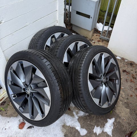 Har sat helårshjul på min fabriksnye Enyaq og sælger derfor det originale sæt sommerhjul, der kun har kørt få km på fabrikken: