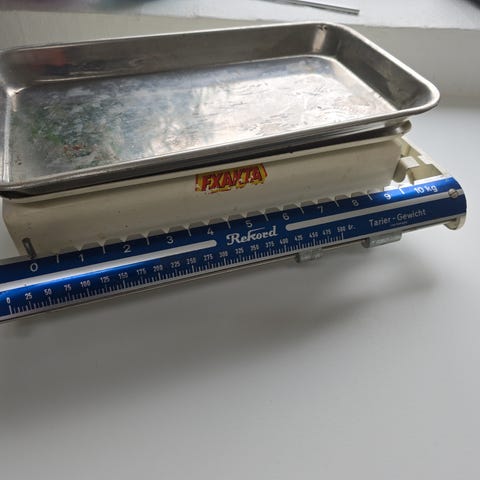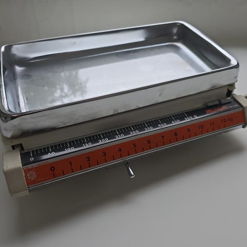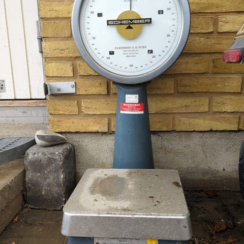 Vægt af mærket BERKEL, produceret i Sverige i 1950'erne.