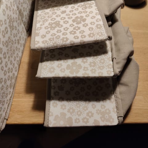 IKEA opbevaringskasser i fletlook. Sættet består af to kasser, der kan bruges til opbevaring i børneværelse, garderobe eller stue. Kasserne har en firkantet form med mørk inderside og kan placeres på hylder, i reoler eller på gulvet til legetøj, tøj eller andre småting.