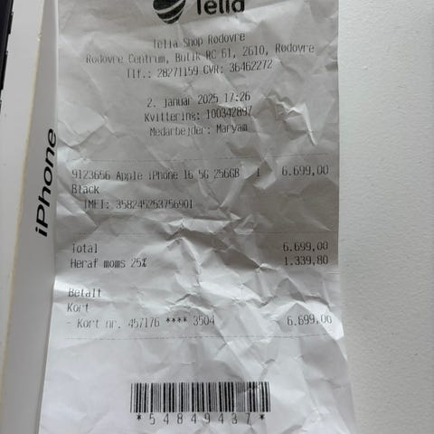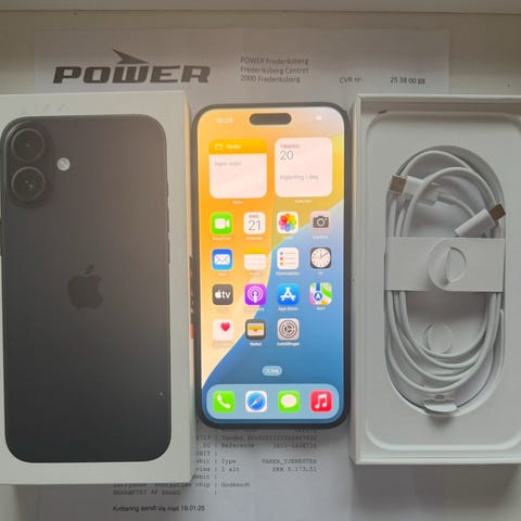 Iphone 16 i hvid med 128gb i god stand og batteriet er stadigvæk godt inkl cover,