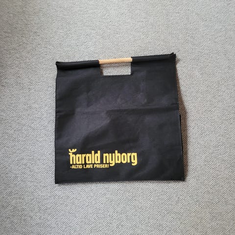 Indkøbstaske med træhåndtag, big shopper. Ny. 37 x 40 x 17 cm. Sort uden logo