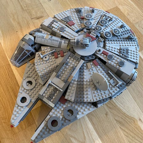 Denne Millennium Falcon kommer med alle klodser, alle figurer (inkl. våben) og manual.