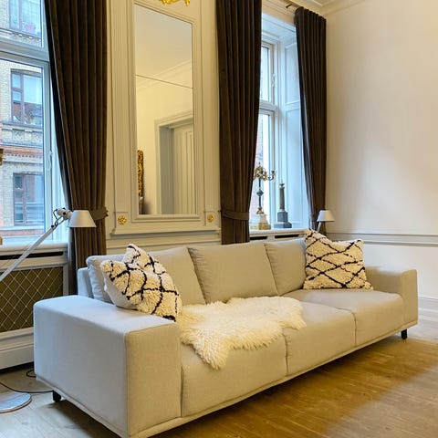 Usædvanlig flot sofa der passer perfekt til både den store elegante og stilrene funkis Hellerup-villa og den imponerende 7-værelses Østerbro-lejlighed med både stuk, profilerede fløjdøre høje paneler.