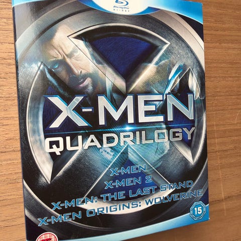 X-Men Quadrilogy Blu-ray film. Indeholder fire X-Men film samlet i én udgivelse på Blu-ray. Filmsamlingen er i original Blu-ray plastcover med trykt for- og bagside. Velegnet til afspilning på Blu-ray-afspillere, der understøtter formatet angivet på omslaget.