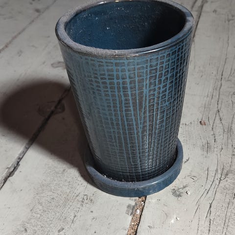 Keramisk urtepotteskjuler i brun glasur. Cylindrisk form med let struktureret overflade og afrundet kant foroven. Velegnet til mindre træer eller større stueplanter. Kan bruges indendørs som dekorativ plantekrukke.