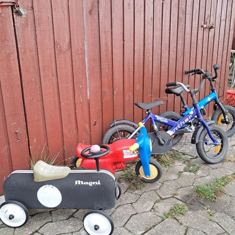 Scooter med vogn fin, men farven falmet i solen. 50kr til sønnens sparegris. Obs! Hurtigst afhentning prioriteres