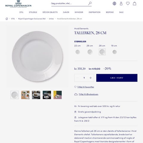 Royal Copenhagen Hvid Elements dyb tallerken 25cm 8 stks.