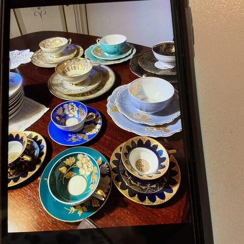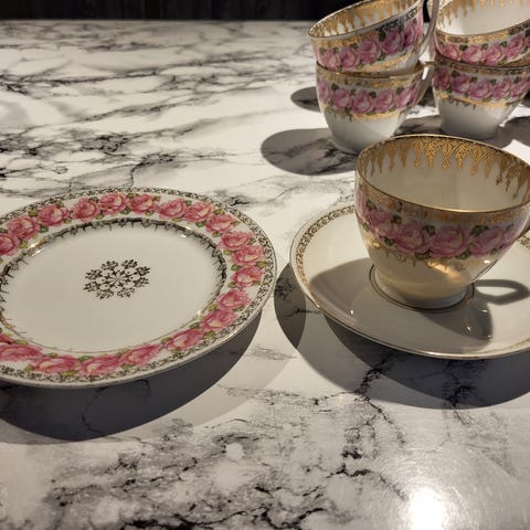 Har dette super fine stel med 15 kaffe kopper med understel med æble motiver