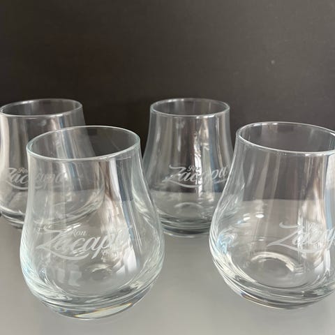 Tumbler glas med Ron Zacapa indgraveret. Aldrig brugt. Kan hentes på Frederiksberg