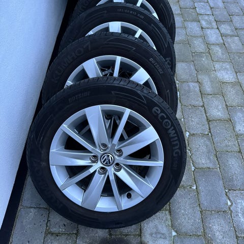 Alufælge med ældre sommerdæk. Har siddet på en VW POLO fra 2005