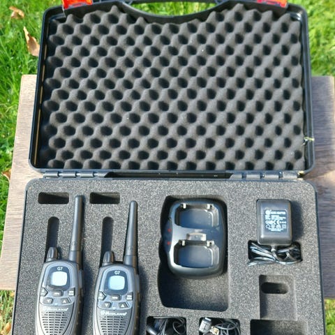 Walkie talkie sæt i camouflagefarve. Sættet består af to enheder med indbygget antenne og display på fronten. Hver enhed har betjeningsknapper på forsiden samt højttaler og mikrofon. Egnet til kommunikation over kortere afstande, f.eks. ved leg, udendørsaktiviteter eller simple arbejdsopgaver, hvor der er behov for trådløs kontakt mellem to personer. Lygte indbygget. Bruger hver 3 stk AAA batterier (medfølger ikke)