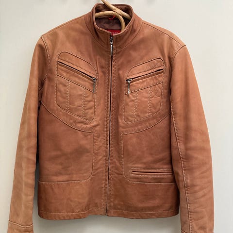 Læderjakke, str. 38, ., cognac brun, skind læder, Smart brun skind jakke i lys brun sælges ...biker style ,mærke ukendt!passer ogsaa en str 36....cognac blødt læder,skindjakke,brun læder ,biker jakke, ka sendes