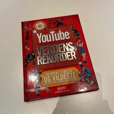 YouTube Verdensrekorder bog. Hardback-bog på dansk om verdensrekorder og spektakulære bedrifter, stunts og tricks relateret til YouTube. Indeholder fakta, billeder og korte beskrivelser af forskellige rekorder og præstationer. Velegnet til læsere med interesse for YouTube, rekorder og underholdning.