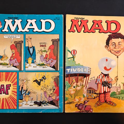 Jeg mangler 10 numre af Dansk MAD (sender gerne liste) og kan lade tre amerikanske MAD-bøger indgå i evt. byttehandel,