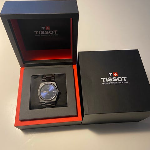 Tissot PRX herreur i rustfrit stål med sort urskive. Alm brugsridser på lænke. Boksen har også lidt skader
