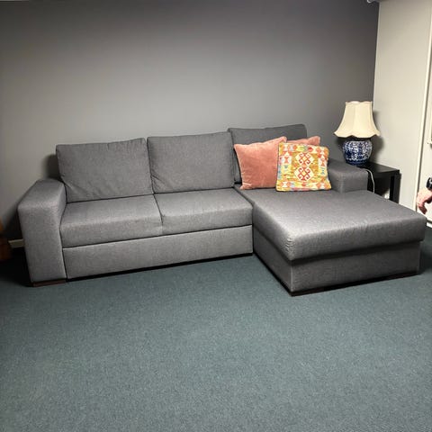 3-personers med venstre armlæn og sovefunktion. Model Loreno. Købt i Boshop i 2017.