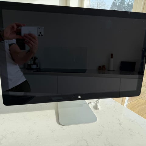 Sælger denne klassiske Apple Thunderbolt Display på 27 tommer. Skærmen er kendt for sit lækre aluminiumsdesign og fungerer perfekt som dockingstation til din MacBook. Med ét kabel får du både stor skærm, højttalere, kamera og ekstra porte.