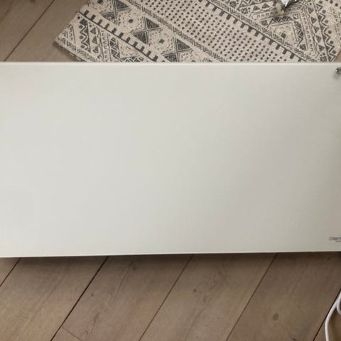 Elektrisk panelradiator i hvid med ribbet front. Radiatoren har drejeknap til temperaturindstilling samt tænd/sluk-knap på siden. Velegnet som væghængt el-radiator til opvarmning af mindre rum, fx kælder, bryggers eller værelse. Materiale i metal med lakeret overflade i hvid.