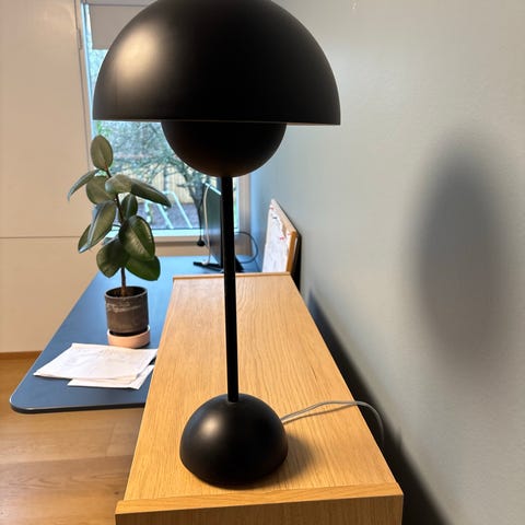 FlowerPot VP3 bordlampe. Måler 50 cm. Meget meget flot stand i farven Postkasserød.