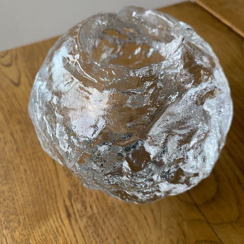 Den kraftige, organiske glasstruktur giver et fantastisk lysspil, når lyset tændes – både hyggelig og dekorativ.
