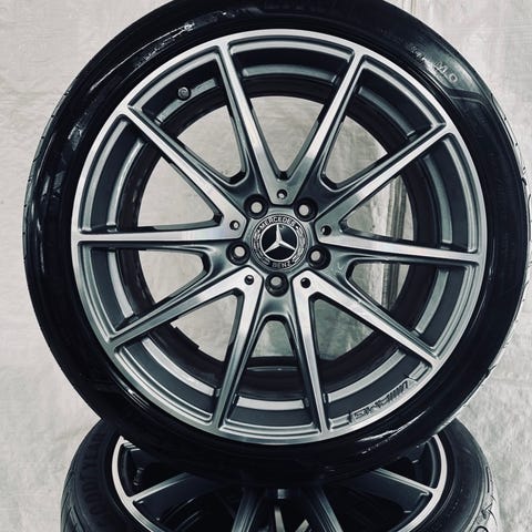 Original AMG fælge og gode dæk 245 40 19, for og 275 35 19 bag, meget flotte ikke påkørt kant el lign. passer på en 220 og 215 .. cl 55, cl 500 og 600, 1998 og op til 2005, og nok mange andre, som E klasse. Meget sjældent ikke at købe mere ny pris ca. godt det dobbelte.. fælge 8 ,5 x 19 og 9,5 x 19 bag