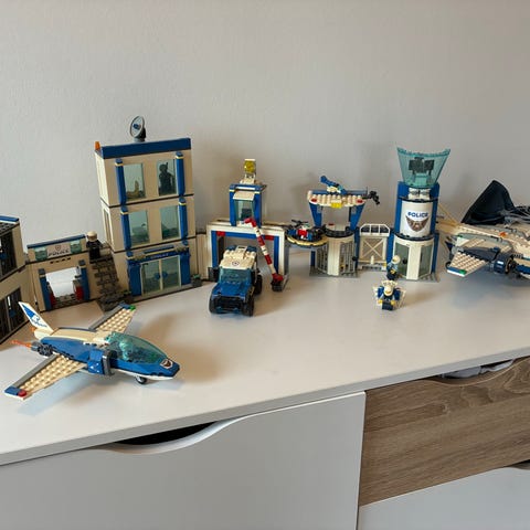LEGO City legosæt politi station 2 stk. og 2 fly, plus bil. Mange figurer, både polit og banditter. Der mange nogle dele, hvorfor den billige pris.