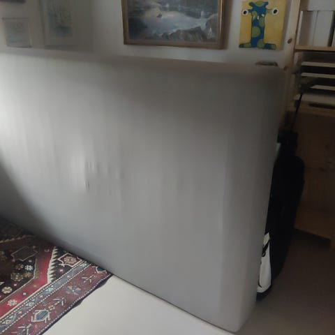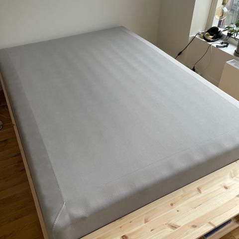120 cm boxmadras med ben af mærket "Stuvland" fra Ikea. Købt i 2020, og brugt sidenhen, men den fejler ingenting.
