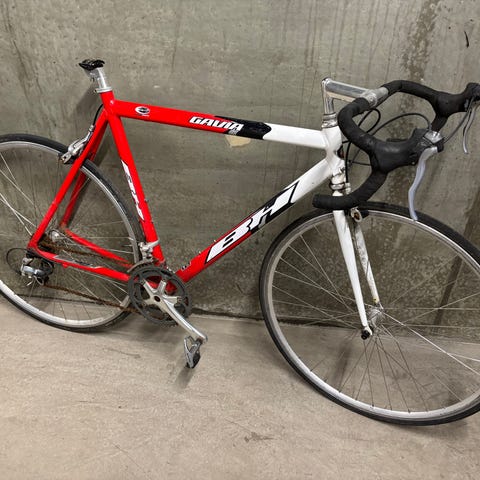 fra 90’erne. Alu stel. Str ukendt men passer ca til højden 183-190cm. Shimano 105 gruppe. Hjul ok. Bagskiftegreb skal efterses.