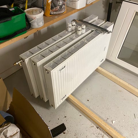 Radiatorer i hvid farve til centralvarmeanlæg. Forskellige størrelser og typer, både pladeradiatorer og ribberadiatorer. Velegnet til opvarmning af rum i bolig eller erhverv, hvor der er vandbåret varmesystem. Flere tilslutningsmuligheder afhængigt af model. Sælges samlet eller enkeltvis efter aftale, afhængigt af antal og mål som ønskes.