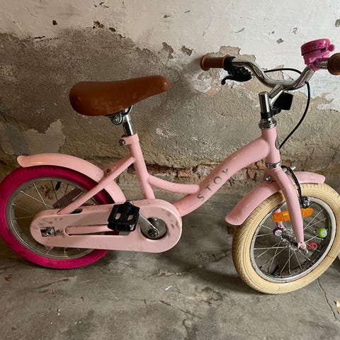 BMW Børnecykel 12" i blå og hvid. Den fungerer både som løbecykel og som almindelig cykel når kæde og pedaler monteres. Cyklen har 12" hjul med dæk velegnet til mindre børn. Sædet er polstret og formet til barnet, og stellet har en buet konstruktion, der gør det lettere at komme af og på. Cyklen er egnet som første cykel til et mindre barn, der skal øve balance og cykling på korte ture.