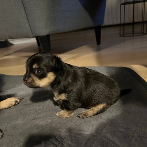 3 chihuahua hvalpe der snart er 8 uger gamle og klar til at flytte hjemme fra. Mor og far er begge langhåret chihuahua. Brun/hvid er hun, Sort/hvid er han og hel hvid er han. Skal til dyrelægen for at blive tjekket, vaccineret, chippet og registreret. Man betaler det halve af beløbet ved reservation.