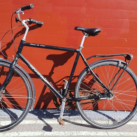 Ikke en Raleigh, men der skulle vælges noget. Meget gammel veteran med exceptionelt sjældent lygteføring. Sadel mangler. Hjul skal have erstattet flere eger. XL stel og 28" hjul (700c). Cyklen fremstår som en klassisk herremodel med fast for- og baglygte monteret samt bagagebærer. Velegnet som projektcykel. Alder: måske 60-70 år. 1 gear og fodbremse. Alderssvarende kombinationslås medfølger.