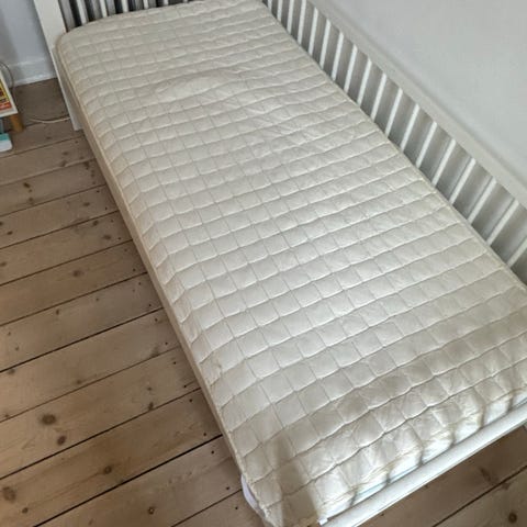 Nsleep kapok madras i hvid farve. Madrassen har kvadratisk quiltet overflade og kontrastkant hele vejen rundt. Velegnet til brug i enkeltseng eller juniorseng, afhængigt af målene. Yderstoffet fremstår i et lyst, neutralt tekstil, som passer ind i de fleste soveværelser og børneværelser. Nyt pris 1799 kr. Brug meget lidt.