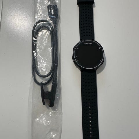 Garmin Forerunner 45S sportsur i sort. GPS-løbeur med rund urskive og digitalt display. Uret leveres med opladerkabel, kasse som ses på billedet. Egnet til registrering af løb og anden træning samt visning af tid og dato.