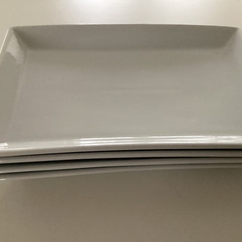 12 firkantede tallerkener i hvid porcelæn.