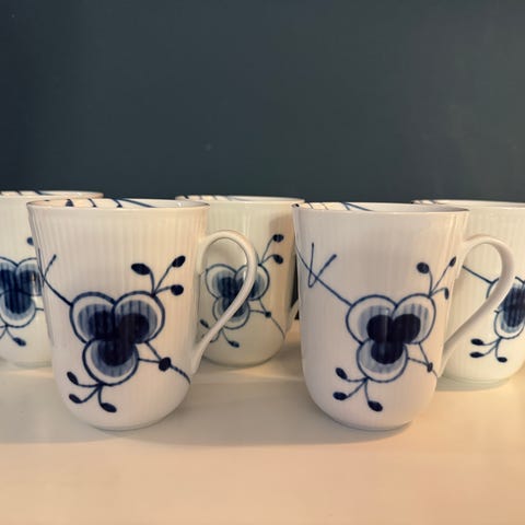 Royal Copenhagen Blå Mega Riflet kopper i hvidt porcelæn med blå dekoration. Klassisk riflede sider og hank. Velegnet som kaffekopper eller tekopper i daglig brug eller som del af en Royal Copenhagen-stelopdækning. Sættet kan kombineres med øvrige dele i Blå Mega Riflet-serien.