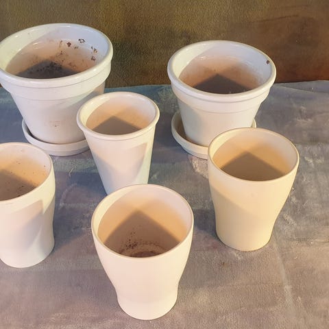 IKEA urtepotter sæt i hvidt porcelæn. Sættet består af flere potter i forskellige størrelser med samme design og små fødder i bunden, som løfter potterne let fra underlaget. Egnede til indendørs brug til mindre planter, krydderurter eller dekorative formål.