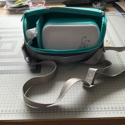 Cricut Hat Press varmepresse til kasketter. Enheden er designet til at overføre motiver og tryk på kasketter og buede tekstilflader ved hjælp af varme. Den har håndtag til sikker betjening og holder/base til opbevaring, når den ikke er i brug. Velegnet til brug sammen med kompatible Cricut-materialer og -maskiner til fremstilling af personlige kasketter og andre hovedbeklædninger af stof.