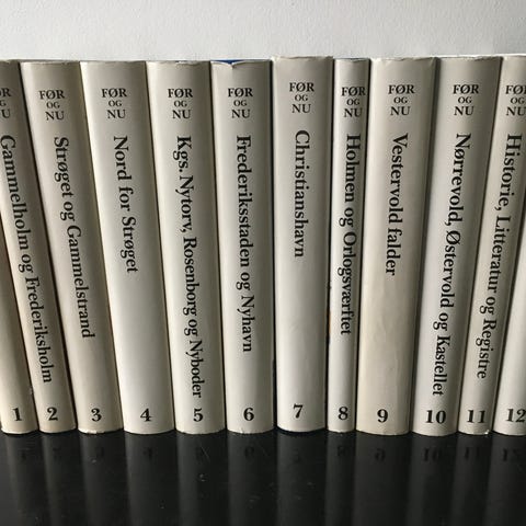 "København før og nu" bogværk bestående af flere bind, herunder bind 1-7 som vist på billederne. Bøgerne omhandler Københavns historie før og nu og indeholder tekst og illustrationer med motiver fra byen, blandt andet havnemiljøer og byrum. Indbundet i hårdt bind med ryg i læderlook og guldtryk på ryggen. Velegnet som opslagsværk eller som samlet historisk bogserie om København.