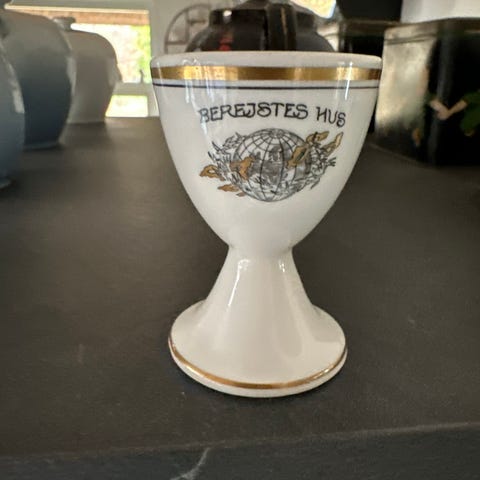 1) æggebæger porcelæn 25kr, SOLGT