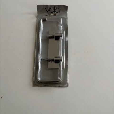Vola toiletrulle holder i hvidmalet metal. Sættet består af et vinklet greb, en monteringsplade med to skruehuller samt to beslag og skruer til fastgørelse.